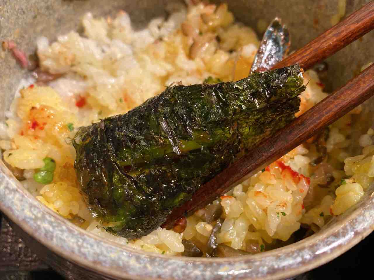 韓国海苔で巻いて食べるのがオススメ!