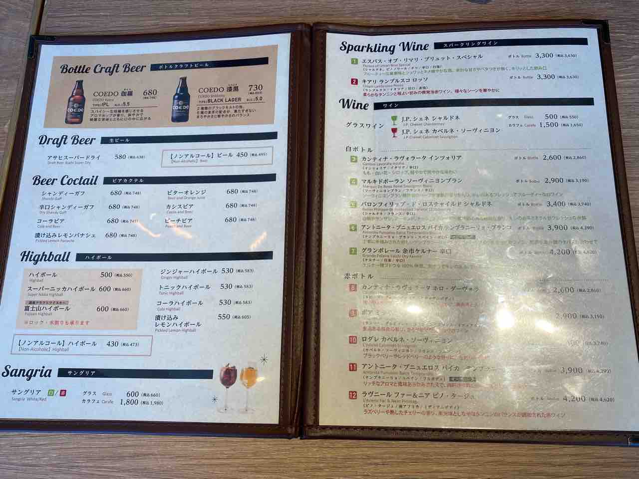 メニュー。