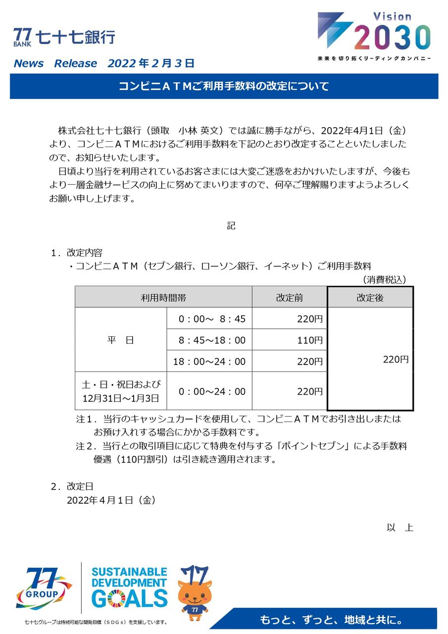 ※『コンビニATM手数料』改定については、こちら。