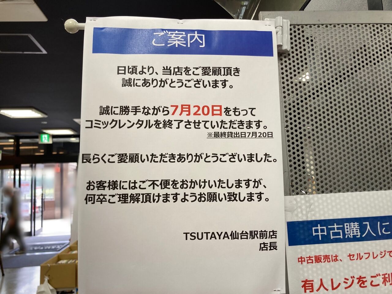 店 名:TSUTAYA 仙台駅前店