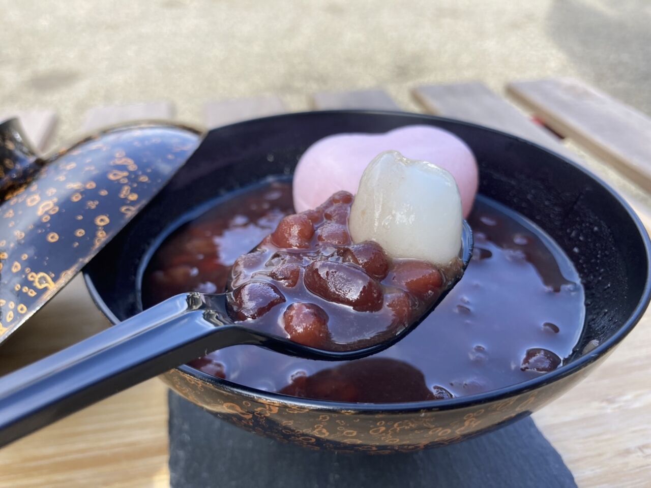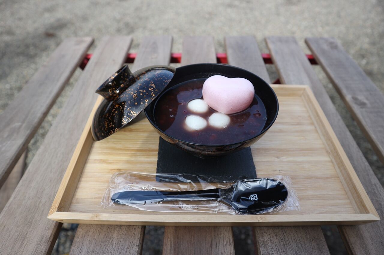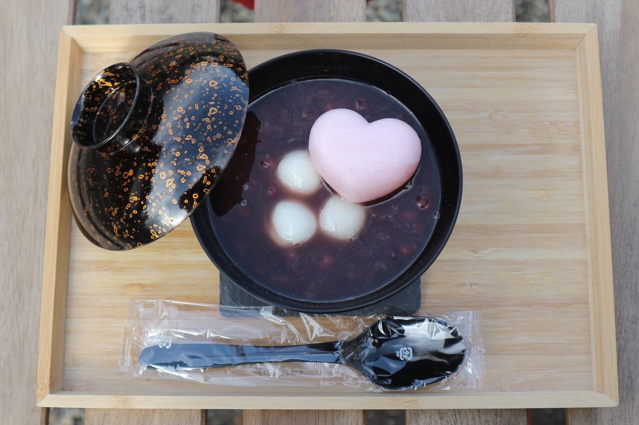 ハートが乗ってるおしるこ…