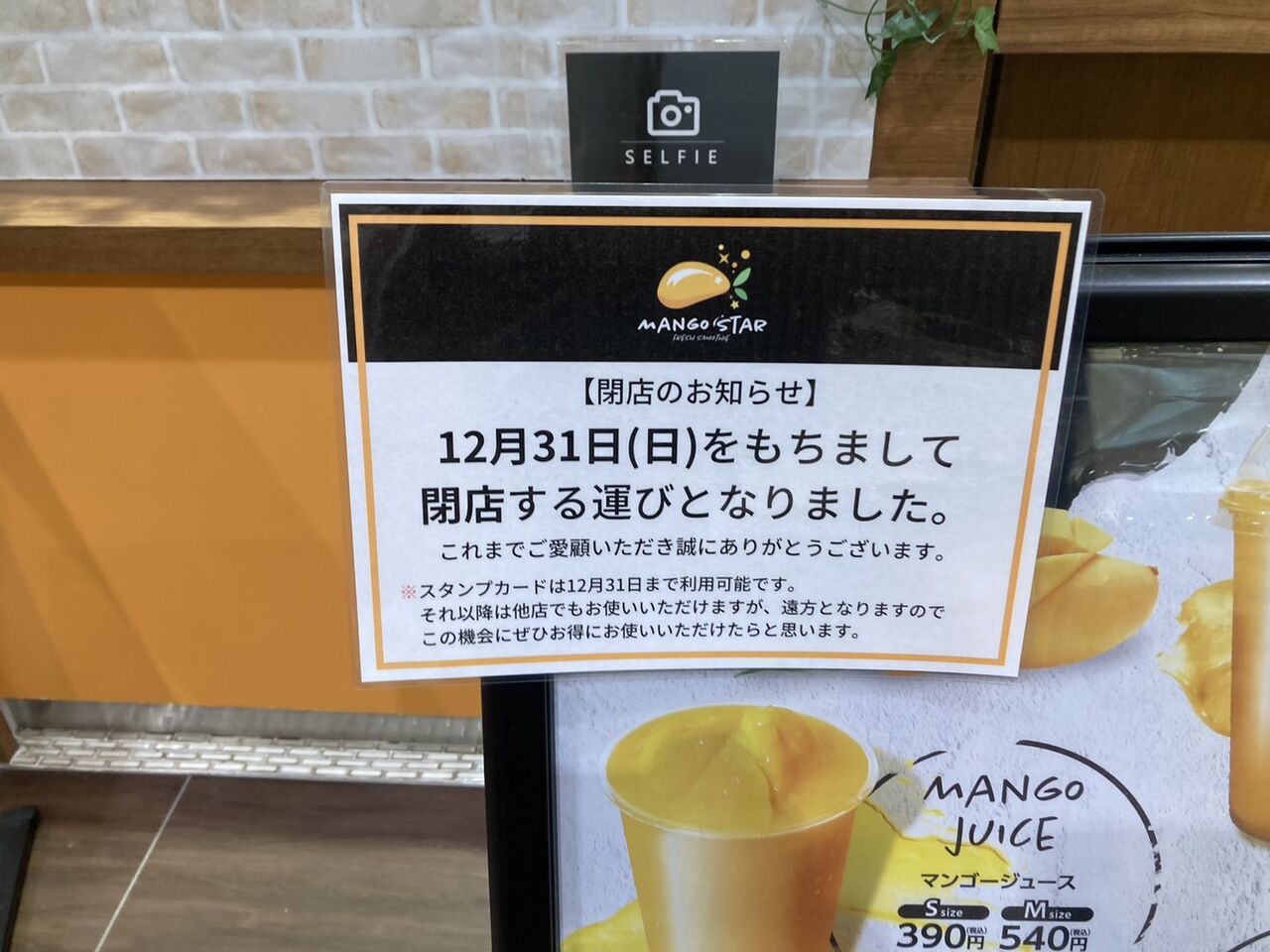12月31日をもって閉店。