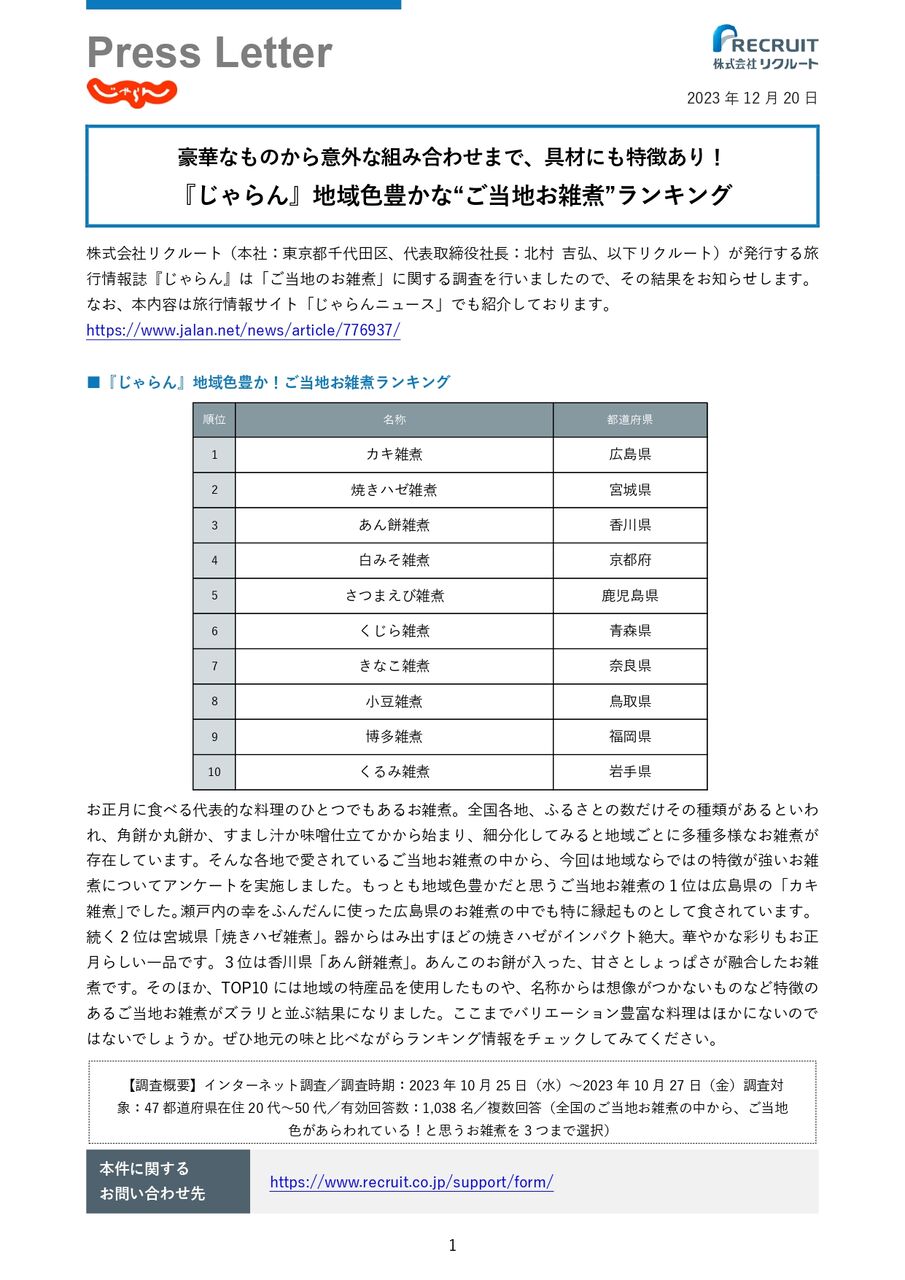 ※『「じゃらん」地域色豊かな『ご当地お雑煮ランキング』は、『株式会社リクルート』調べです。