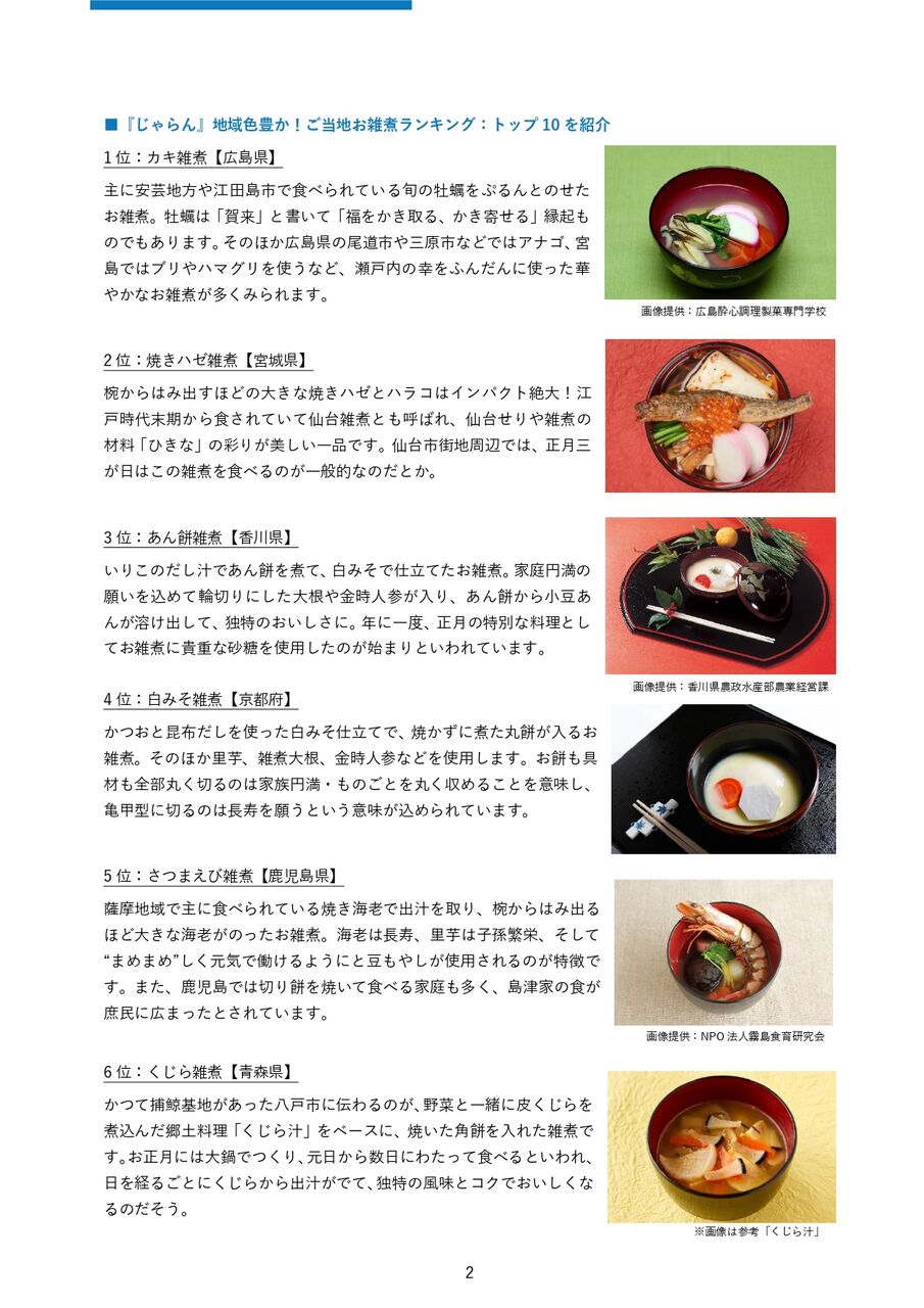 『地域色豊かなご当地お雑煮ランキング』発表~