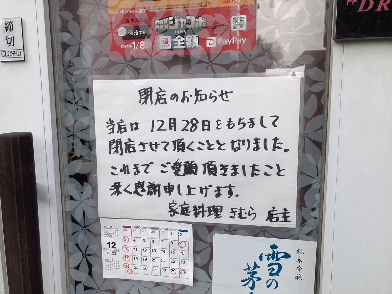 閉店のお知らせがしっかり貼ってある。