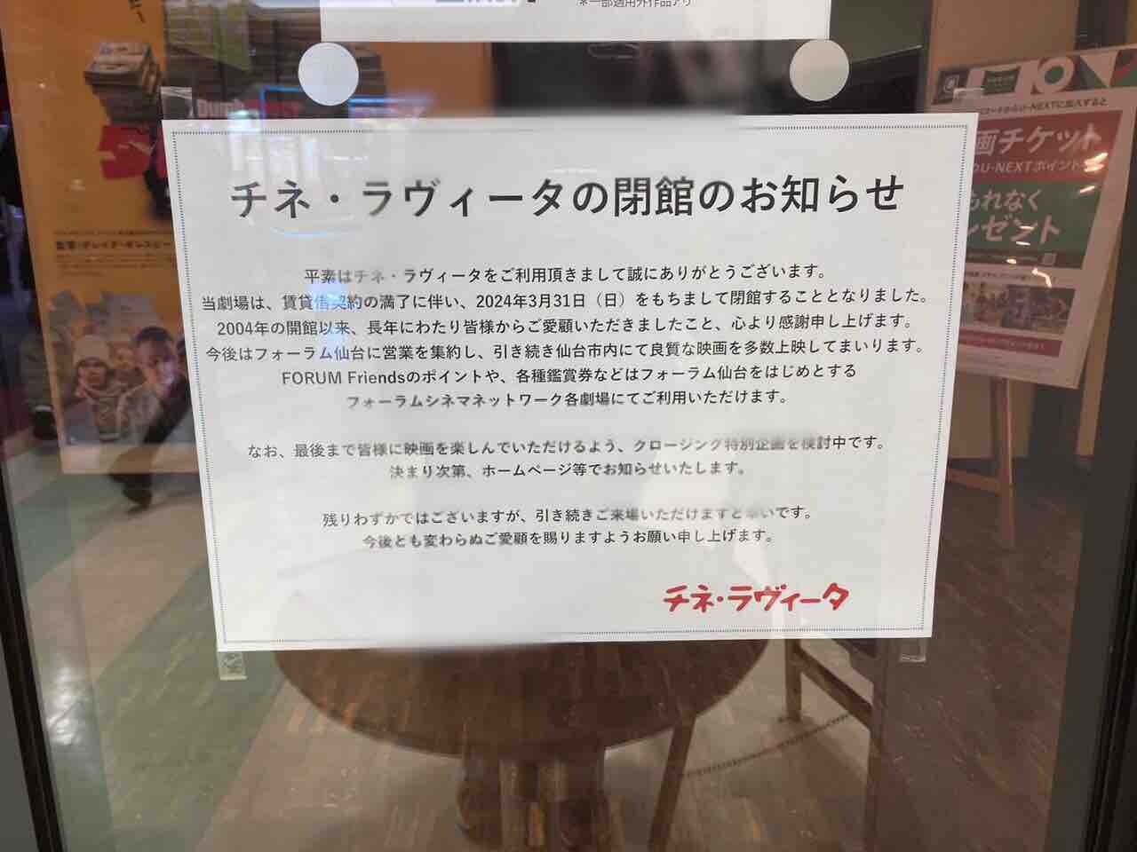 『チネ・ラヴィータ』…閉館するらしい。涙